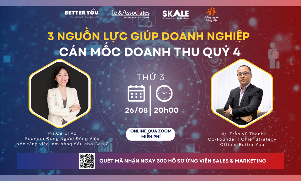 Đây không chỉ là vấn đề của một vài công ty, mà là câu chuyện chung của nhiều doanh nghiệp đang muốn tăng trưởng nhanh nhưng vận hành quá tốn sức. Để tháo gỡ bài toán này, SKALE tổ chức Workshop online đặc biệt với sự tham gia của 2 chuyên gia nhân sự đã có nhiều năm kinh nghiệm trong lĩnh vực tuyển dụng nhân tài.